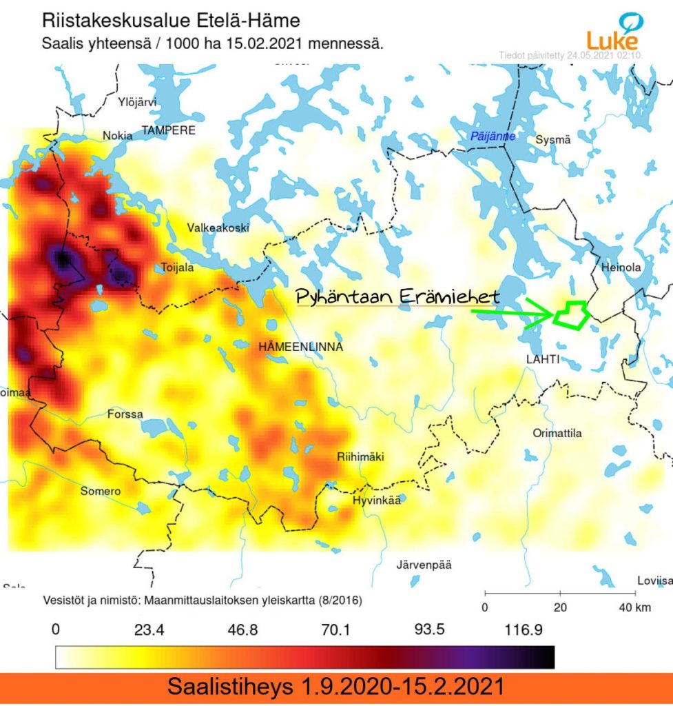 Luonnonvarakeskus ja Riistakeskus ovat määritelleet hirvikannan tavoitteeksi metsästyskauden jälkeen 2,5-3,0 hirveä/1000 ha. Lahden seudun riistanhoitoyhdistyksen EH3 alueelle jääväksi kannaksi arvioitiin vain 1,4 hirveä/1000 ha, joka on todella alhainen kanta. Pyhäntaalla on jätetty harkinnan mukaisesti lupia käyttämättä viime vuosina ja Riistakeskus myös puolitti lupamäärän kaudelle 2021-2022, eikä lupamäärän odoteta myöskään kasvavan lähivuosina.